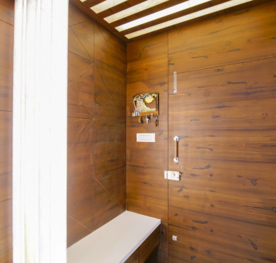 Making Details Type: Kitchen cabinet, Kitchen storage, L shape kitchen Materials Used: Plywood, Laminate Sheet, Marble